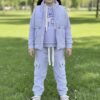 بنطال: بنطال رياضي بقصة فضفاضة قليلاً (cargo) ويحتوي على جيوب جانبية.