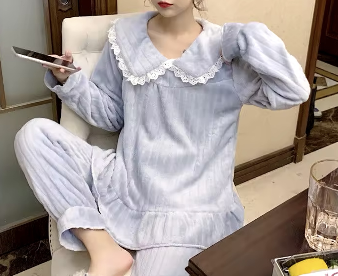 بيجامة نسائية/ بناتية تصميم كلاسيكي ناعم جدًا/ المقاس L