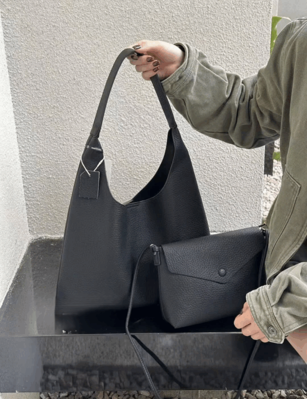 حقيبة يد نسائية من الجلد يعطيها مظهر جميل متكونة من قطعتين