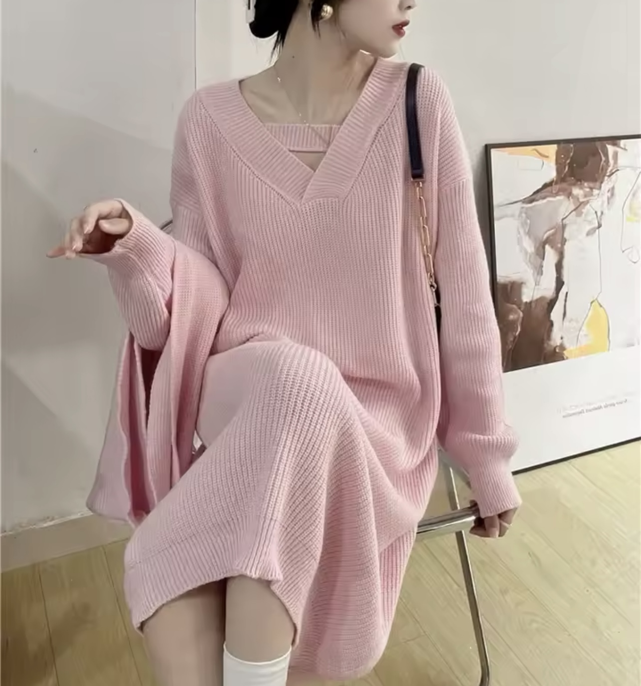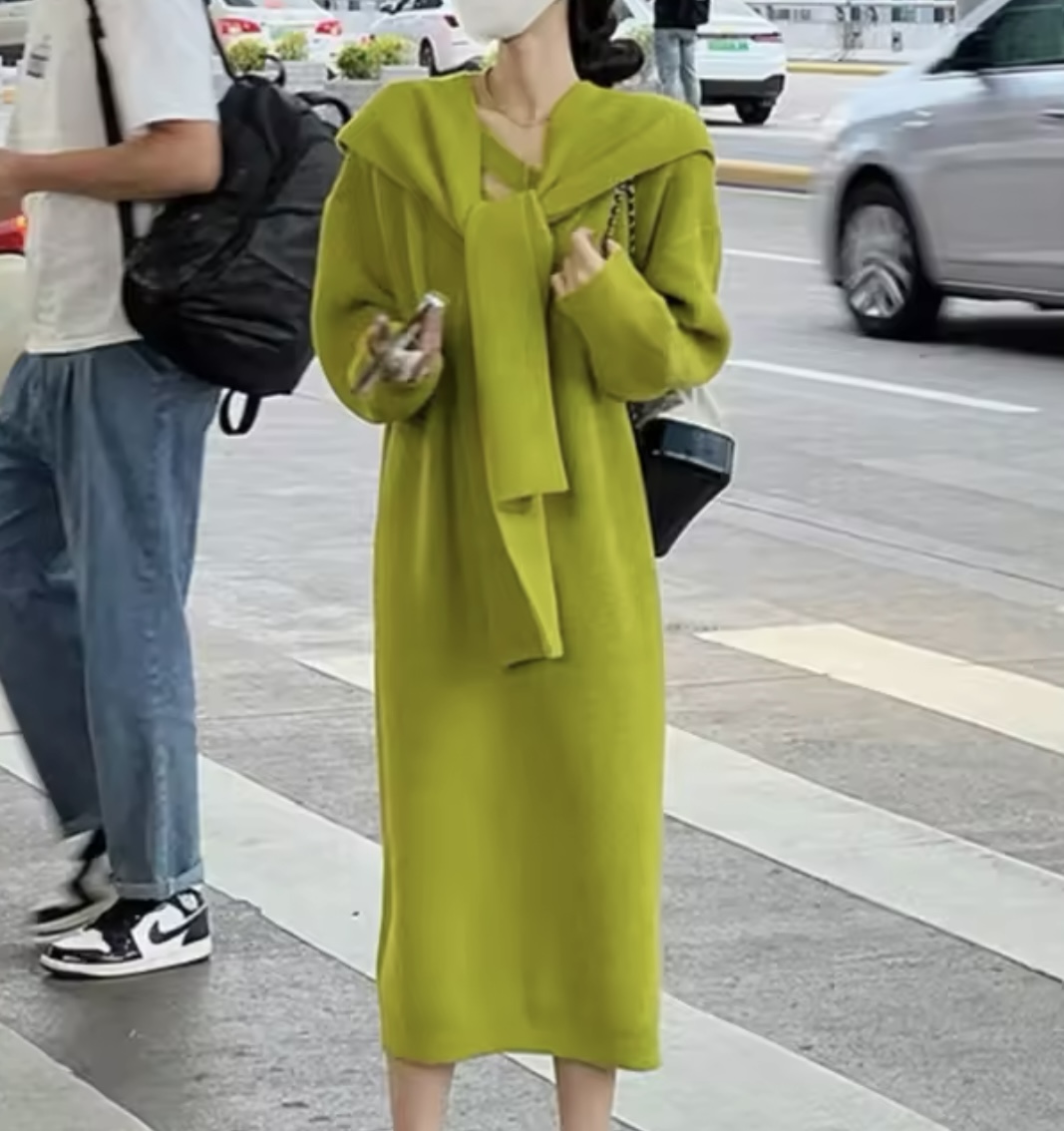 فستان تريكو طول محير بالاضافة الى شالX طربوش متحرك (ستاندر)