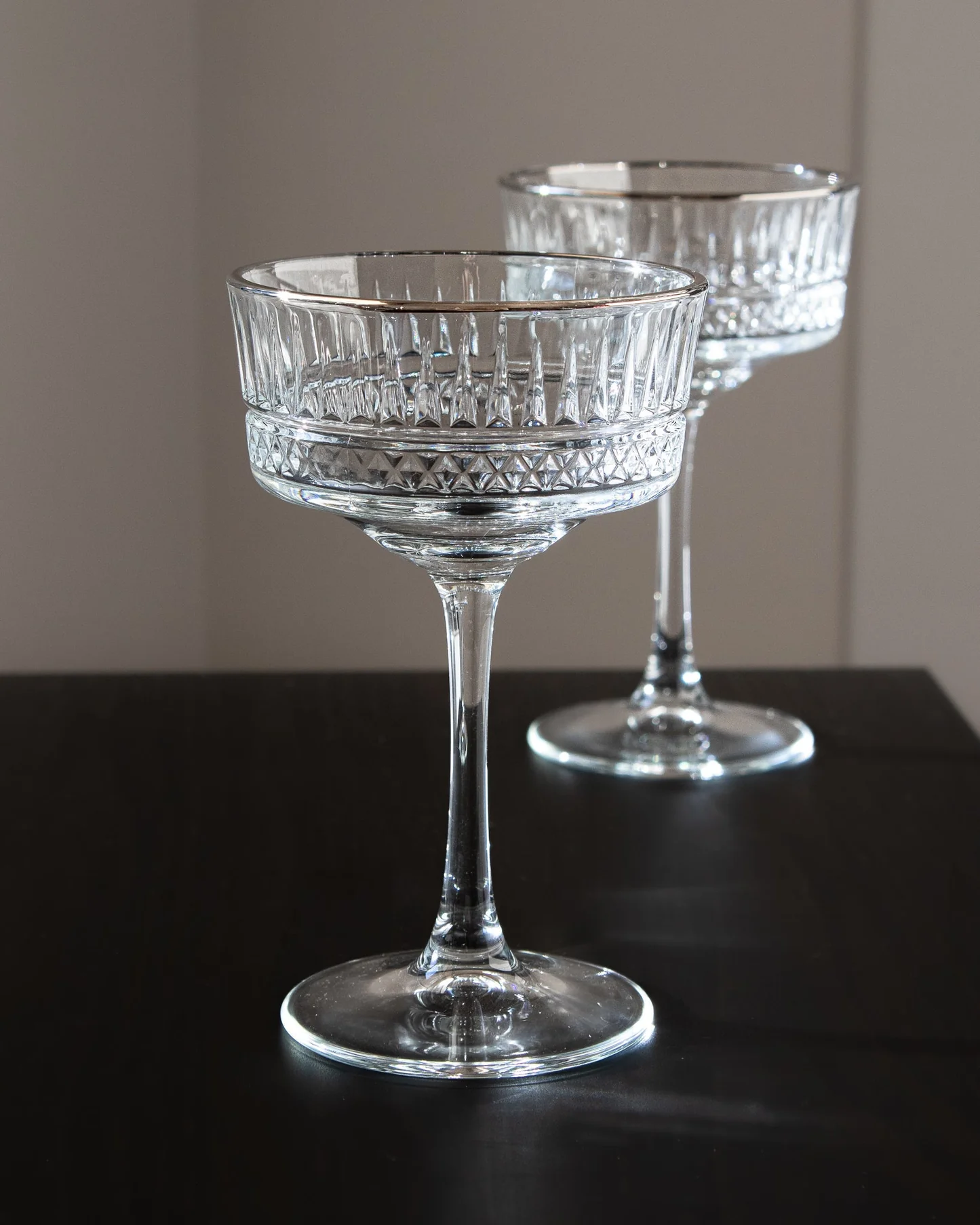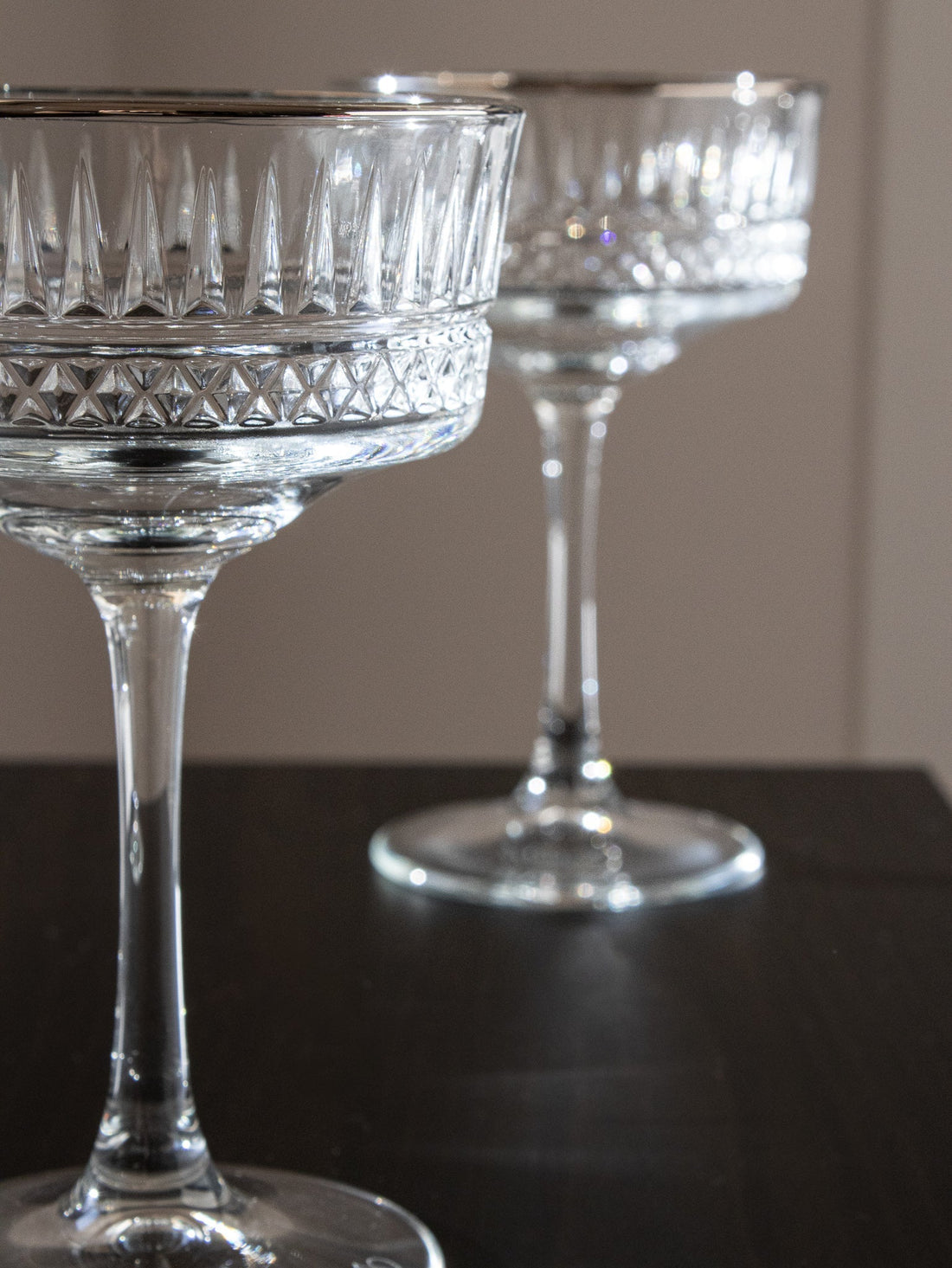 6 كؤوس كريستال (منسب للفروت سالاد والمحلبية والبودينغ) بعنق طويل ووعاء عريض/ بخط ذهبي جميل وراقي جدًا