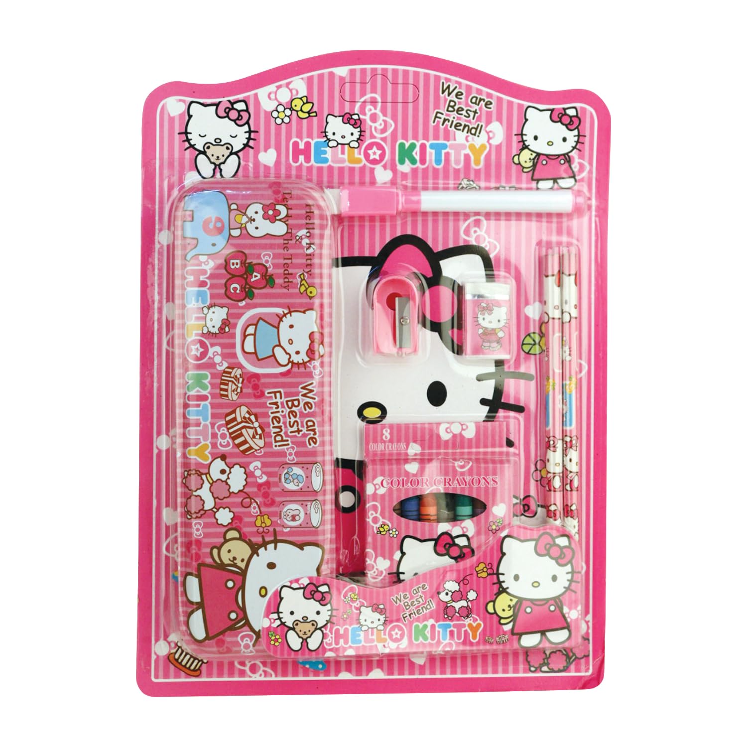 تتكون من جزدان ،اقلام الوان ، مبراه،ممحاه،2قلم رصاص